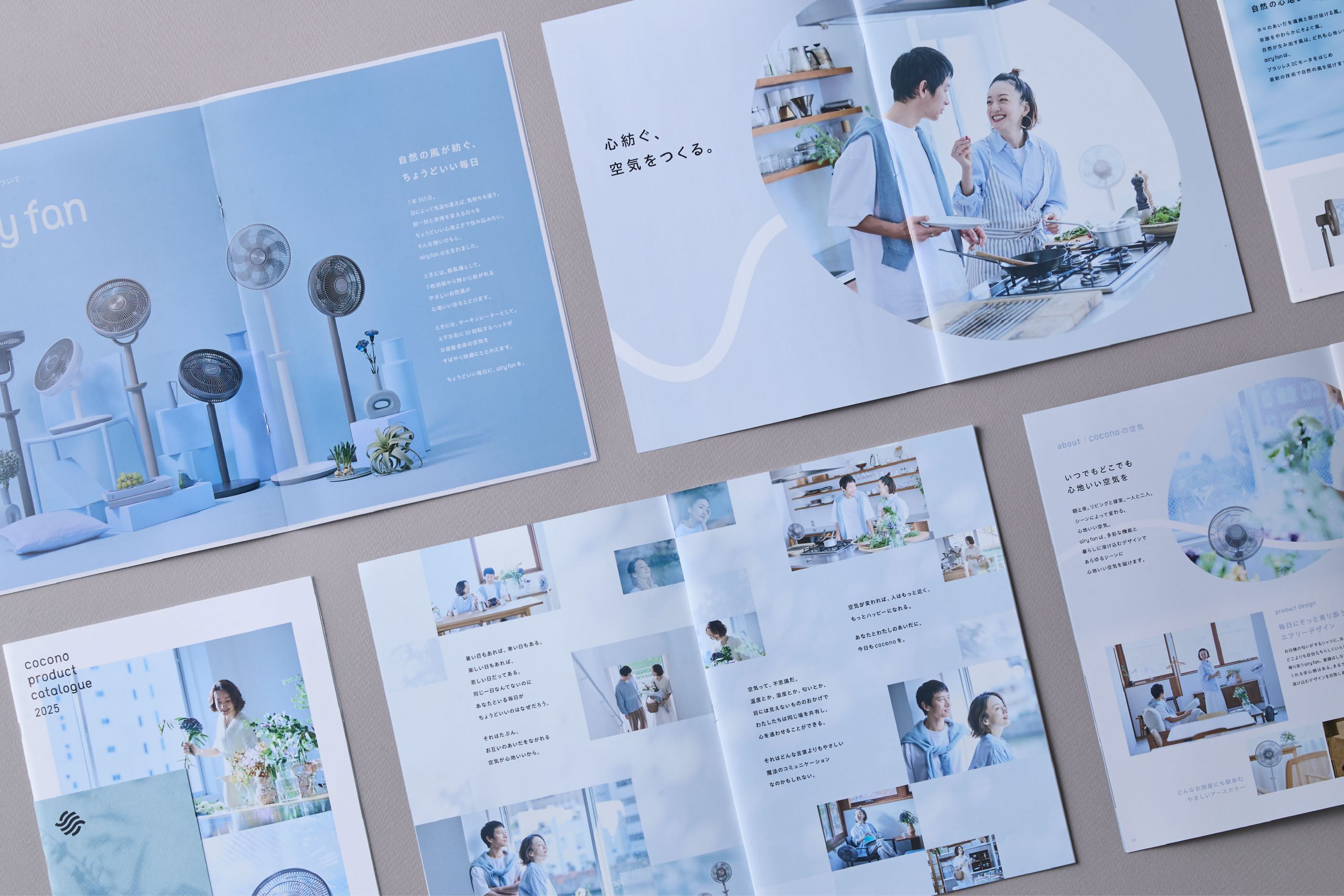 ブランドのトータルディレクションと、cocono製品として第一弾にリリースされた、airyfan(エアリーファン)の製品周りのデザイン、コミュニケーションツールまで担当させていただきました。